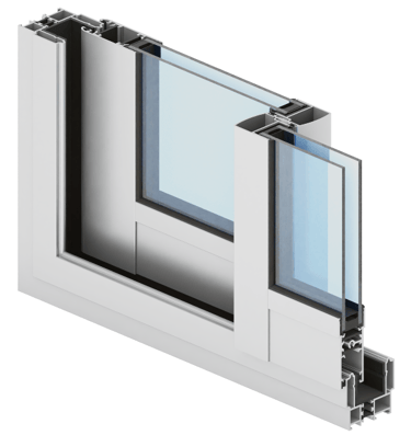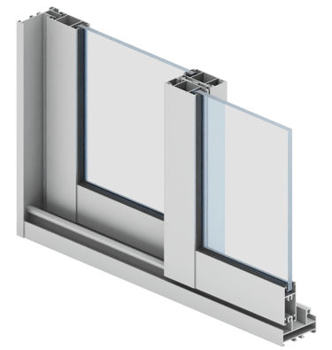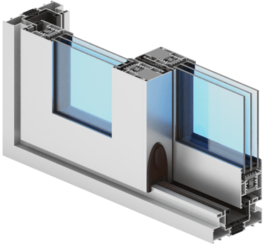 a three-chamber system used to design sliding doors; the system is thermally insulated (thermal inserts made of an improved thermal performance material)